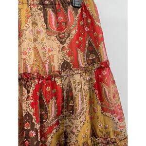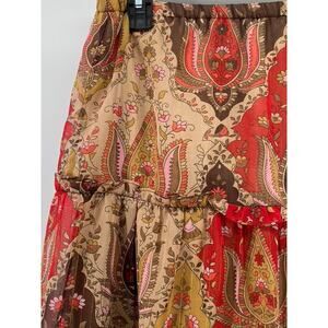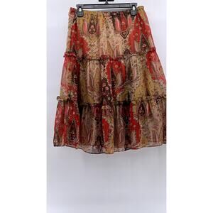 ZERO ZERO Women's Red-Tan Printed Tiered A-Line Knee Length Skirt SZ M