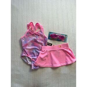 ZEROEXPOSUR Girls Size 4 Shooting Star 1-Piece, Cover-Up Skirt & Goggles Swimsuit Set