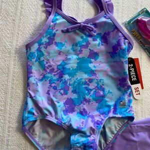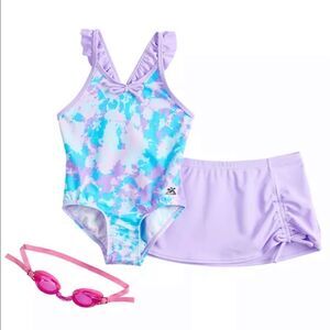 ZEROXPOSUR Girl’s Print One-Piece & Cover-Up Skirt Swimsuit with Goggles