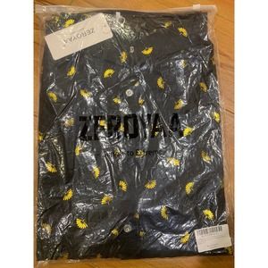 ZEROYAA Mens Extra Large Black Gold Fan Asia Print Button Down Slim Fit LS Dress