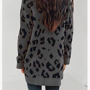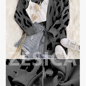 ZESICA Animal Print Open Cardigan with pockets Medium