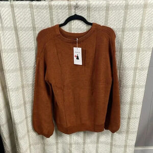ZESICA Crew Neck Long Lantern Sleeve Casual Loose Ribbed Knit Solid Soft Sweater