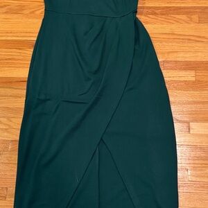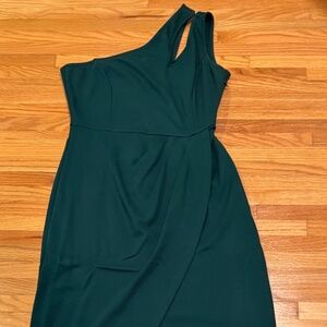 One Shoulder Cutout Ruched Bodycon Wrap Slit Formal Cocktail Party Midi Dress in Forest Green size Medium (US 8-10)