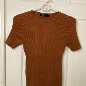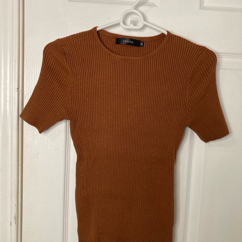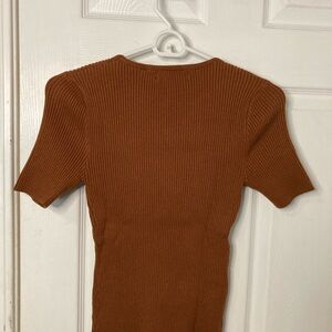 ZESICA Rust Ribbed Knit Top