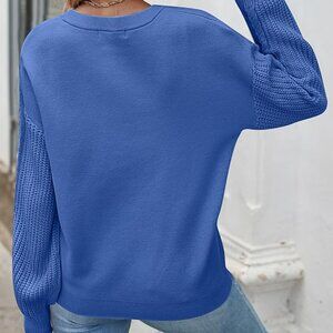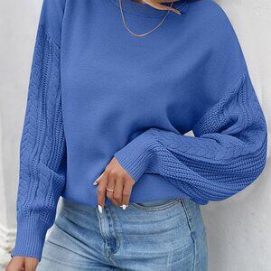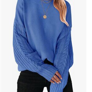 ZESICA Women's S Blue Spring Fall Long Sleeve Crew Neck Sweater Top Solid Color Cable Knit Chunky Casual Oversized Pullover Sweater