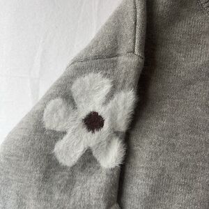 ZEUI Women’s Grey Crewneck Sweater Fuzzy Floral Accents Size Large Cozy Soft