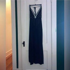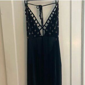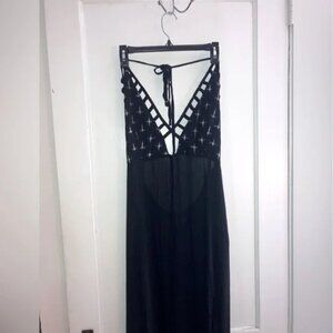 Rare sold out boho goth flowy maxi dress with pockets and a halter tie. Great for the beach over your black bikini! Worn only once and in great condition. Sold out on the website. Runs large, slightly sheer.