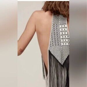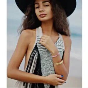 ZHENNYMPH ZHEN NYMPH Tan Black Fringe Tribal Racerback Dreamcatcher Dress S M
