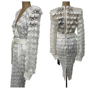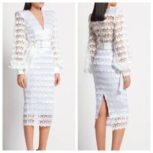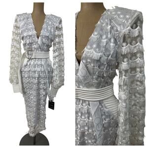 Zhivago It’s Over White Tassel Lace Fringe Belted Long Sleeve Midi Dress $695