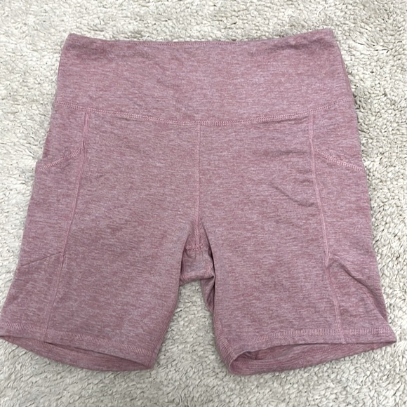 WOMENS SIZE L polyester/spandex 2 side pockets, inseam approximately 6", butter soft, very nice, rise approximately 10"