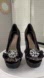 Take your evening to new heights Princess! These are so glam and sexy! In good condition. Slight signs of wear noted. See pics and video. Peep toe.