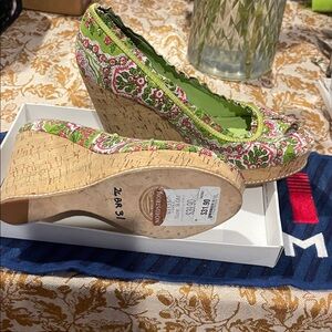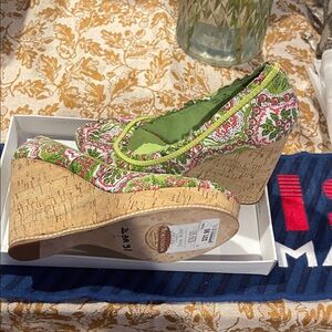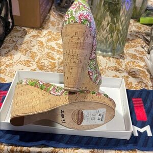 Chic floral design with vibrant colors. Perfect for adding flair to any outfit. Comfortable peep toe style.