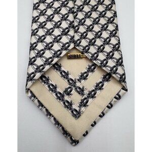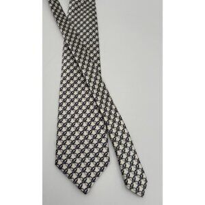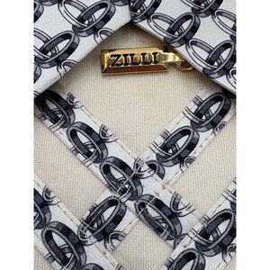 ZILLI Men's 100% Silk Necktie Luxury Geometric Cream Gray Rings ITALY 61" EUC