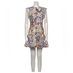 This short flounce dress shows Zimmermann's passion for detail, colour and print. Its design is crafted from a mix of cotton and linen decorated with a colourful Tama floral patchwork all over.