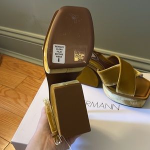 ZIMMERMANN, 95mm Velvet platform sandals SIZE: 36 IT / US 6, Color: Mustard