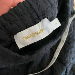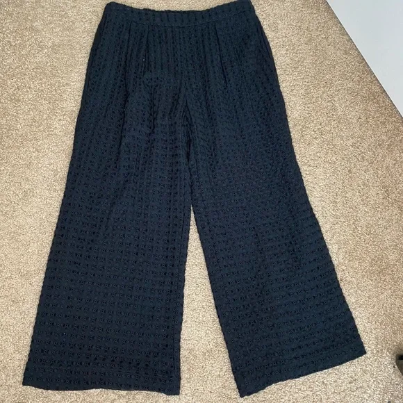 ZIMMERMANN BLACK LINED EYELET WIDE LEG PANT SIZE 1 (US SIZE 6)