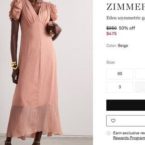 This is a beautiful ZIMMERMANN Biscuit (Rosy Tan) Eden Gather Sleeve Midi Dress in size 0 Petite. Recent collection, retail $950. It was worn once for a photo shoot and the tag is included. Excellent condition. The bias cut dress is single layer, semi-sheer 100% silk chiffon and the matching slip is poly / elastane jersey. The dress has a few small faint marks near the right armhole and on the right side as shown, but the rest of the dress is like new. They are barely visible when it’s worn and it has not been dry cleaned. The slip has been cold washed. The dress has snap thread loops inside the shoulders to secure it to the slip. Left side zipper. Internet description: Zimmermann's 'Eden' dress has such a romantic, vintage-inspired feel. Cut from airy silk-georgette, it's gently gathered along the shoulders and sleeves and has a V-shaped empire waist that draws the eye in your narrowest part. The subtle asymmetric hem allows the back to float ethereally behind you as you walk. Dress: Bust 32, Waist 25, Hips 36, Length 45-47. A-Line Slip: Unstretched Bust 27, Length apx 38.5 (adjustable straps).