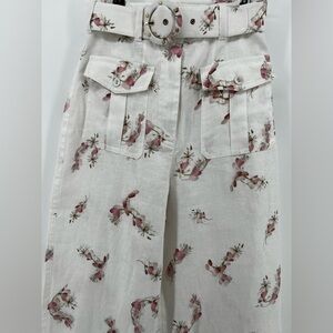 ZIMMERMANN Dancer BELTED LINEN WIDE LEG PANTS AU 1 US 6