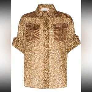 ZIMMERMANN Empire Leopard Print Button-Up Cuffed Shirt Zimmermann Sz 0