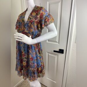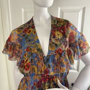 ZIMMERMANN Lovelorn Frill Cape Dress in Blue Floral Size 2.