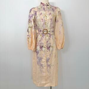 ZIMMERMANN Lyrical Buttoned Midi Dress Floral Print Linen 0 (US 4) NWT