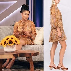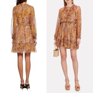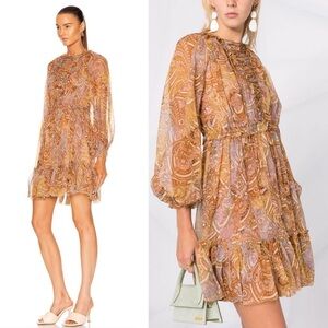 ZIMMERMANN Paisley Silk Ruffle Trim Puff Long Sleeve Lace Up Flounce Hem Dress 4