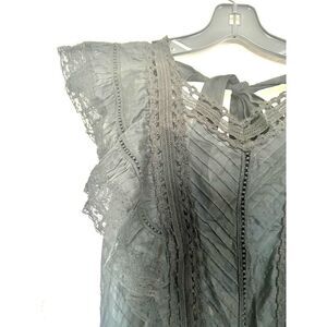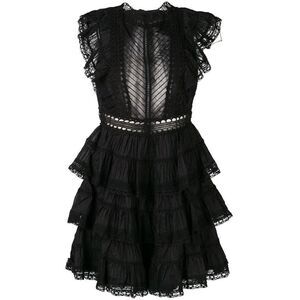 Black cotton ruffled trimming dress from Zimmermann featuring a layered design, cap sleeves, a lace detail, a v-back and a bow ribbon.