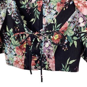 ZIMMERMANN Size 0 Bellitude Cropped Lace-up Floral Print Linen Top Shirt Blouse