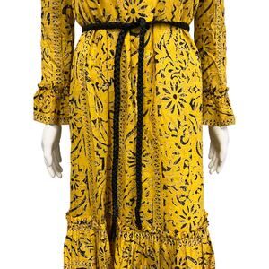 ZIMMERMANN Yellow Cotton Lulu Frill Hem Long Sleeve Maxi A-line Dress Size 0P