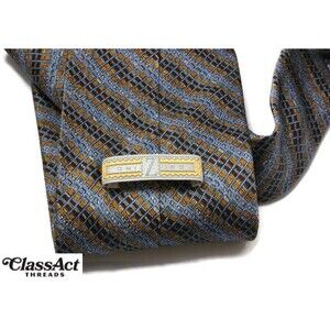 ZINC 100% Silk HAND MADE Necktie Tie Blue Brown Geo Metric 3.75" Wide