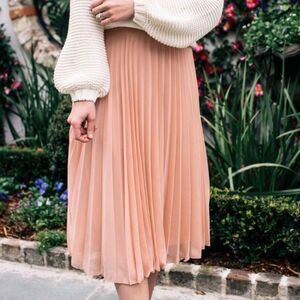 On trend this season. pleated chiffon high waisted midi skirt with beaded waistband. Lined and ready for all your fall layering looks. EUC.