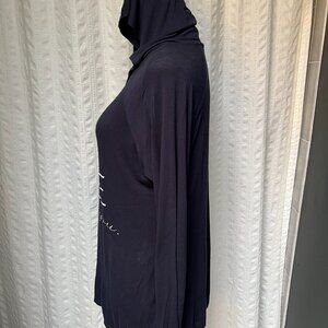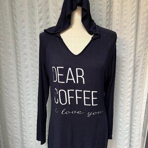 SALE! For all coffee lovers ... great black hooded top. Very soft and stretchy. The sides hang slightly (couple inches) longer than the front and back.
