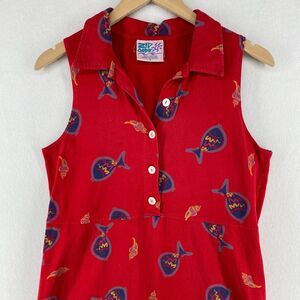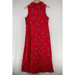 ZIP CODE Dress M Fish Shell Print Popover Maxi Sleeveless Jersey Cotton Red