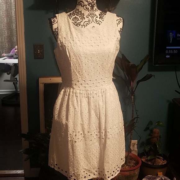 Off white dress. Has cute zipper in back and 3 buttons in the back. EUC make me an offer