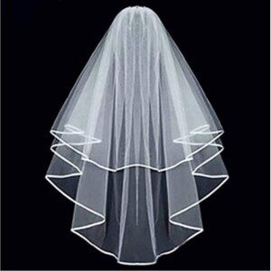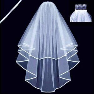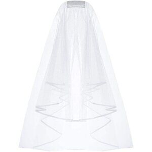 ZIYAN White Double Ribbon Bridal Wedding Veil with Comb
