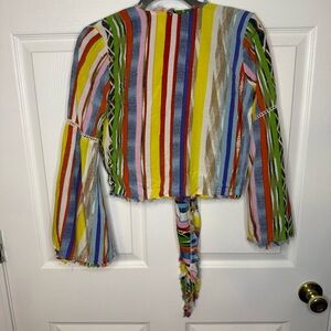 Z&L Colorful Striped Blouse with Tie Front Cropped Size Small GUC