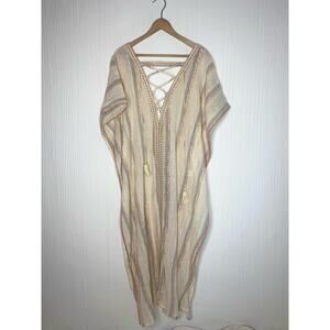 Z&L Golden Slumbers Metallic Stripe Cotton Kaftan Dress NWT US MEDIUM/LARGE