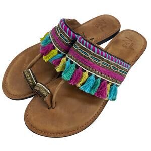 Z&L Sz 39 Boho Sandals Beaded Fringe Tassels Colorful Leather Slide Thongs Z & L