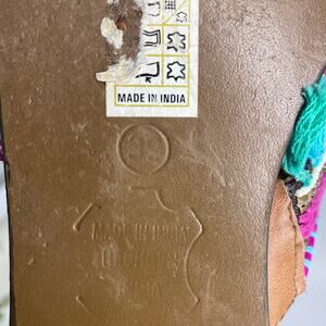 Z & L Size 39 Boho Leather Sandals with Beads and Colorful Tassels. A little fraying on the upper edge of left shoe as shown in phots. Otherwise, good pre-owned condition