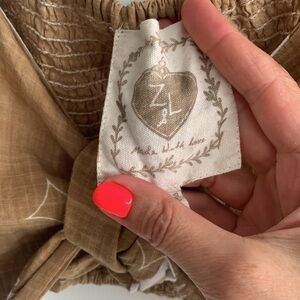 Z&L puff sleeves , tie front boho Gypsy crop top, size M