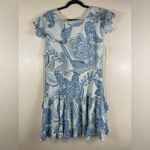 Z&L EUROPE Tassel Tie Armhole Lace Trimmed Tiered Mini Dress Tucan Print XL blue