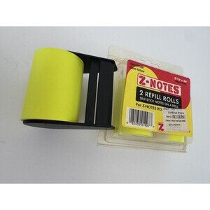 Z-Notes Sticky Notes on a Roll Neon Yellow w/ Dispenser & 2 Refills 26’x2 3/8”