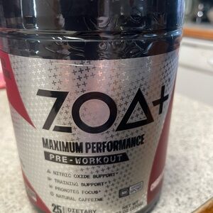 ZOA+ Maximum Performance Pre-Workout. Features nitric oxide support and natural caffeine. Ideal for training support and focus.