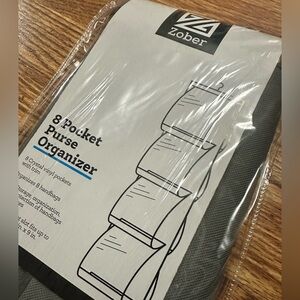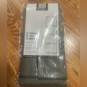 Zober Hanging Purse Organizer For Closet Clear Handbag Organizer For Purses, Handbags Etc. 8 Easy Access Clear Vinyl Pockets With 360 Degree Swivel Hook, Gray, 48” L x 13.8” W