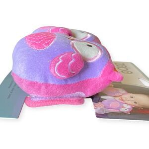 Pink and purple owl cushions to provide additional comfort to baby in carseat or stroller.
