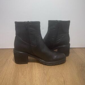 ZODIAC GANNET WOMENS BLACK LEATHER ANKLE BOOTS LUG SOLE SIZE 7.5 NEW