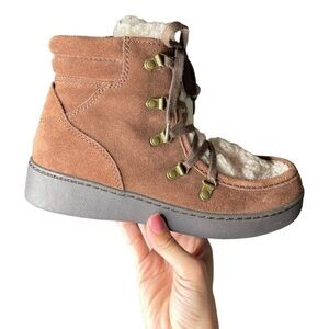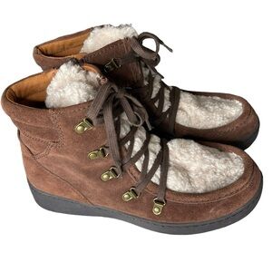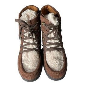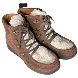ZODIAC Pierson Women’s Leather Suede Ankle Wedge Boots Faux Fur Brown Size 9