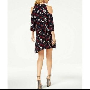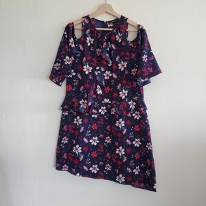 ZOE BY RACHEL ZOE Navy Blue Floral Cold Shoulder Asymmetric Dress