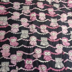 ZOE + CHLOE Scrub Top Womens Size M Black with Pink Grey Owls
