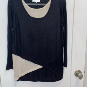 Color Block Black/Ivory Long Sleeve 100% Cashmere Sweater